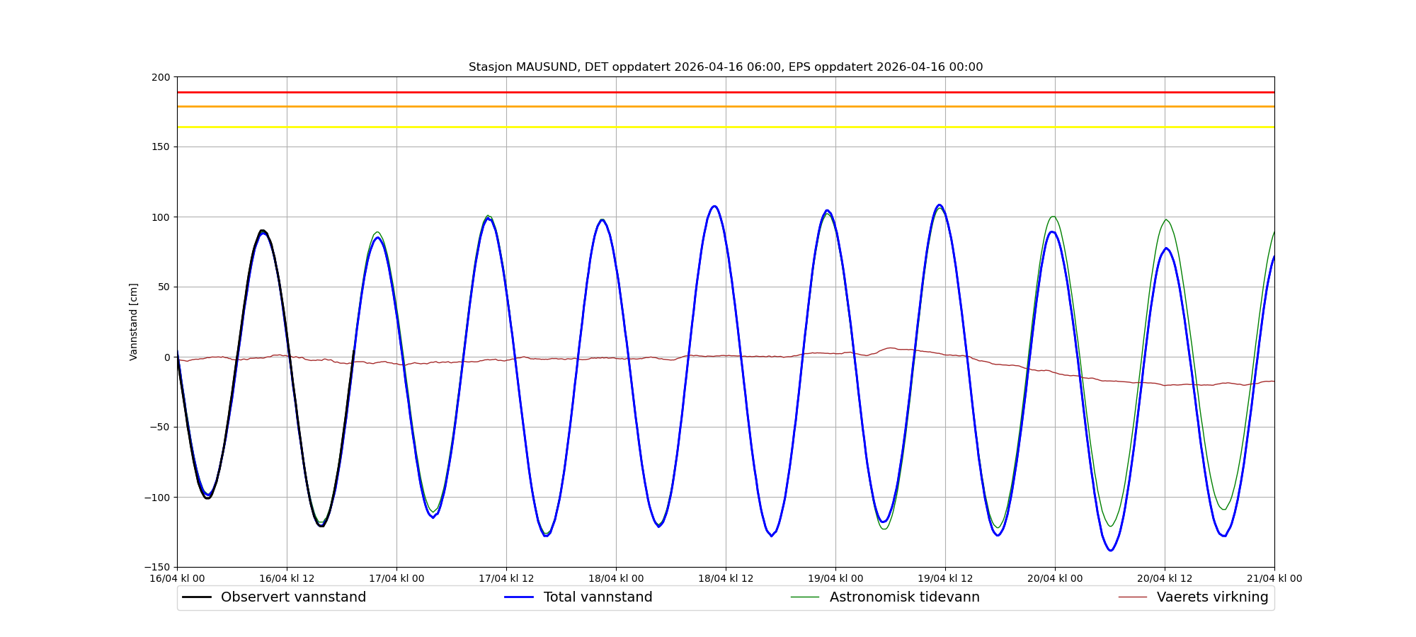 Korreksjon av vannstandsdataene: -15 cm