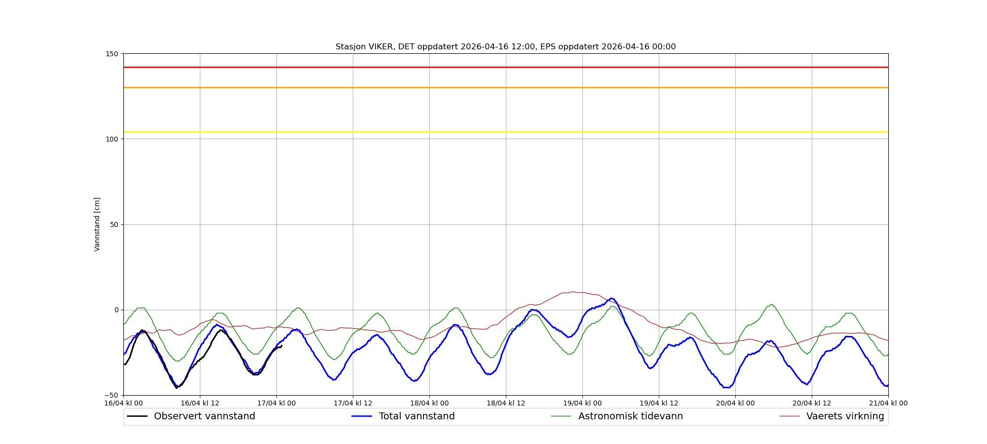 Korreksjon av vannstandsdataene: -10 cm