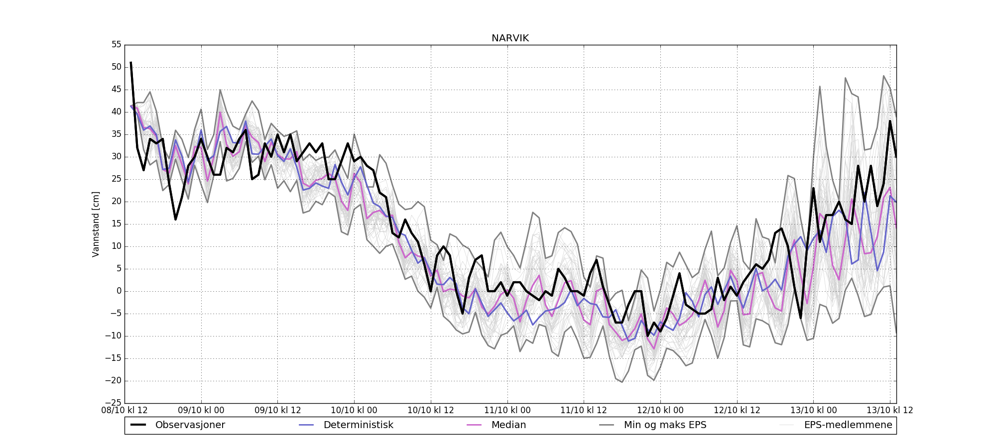 Gjennomsnittlig avvik deterministisk - observert: -3 cm