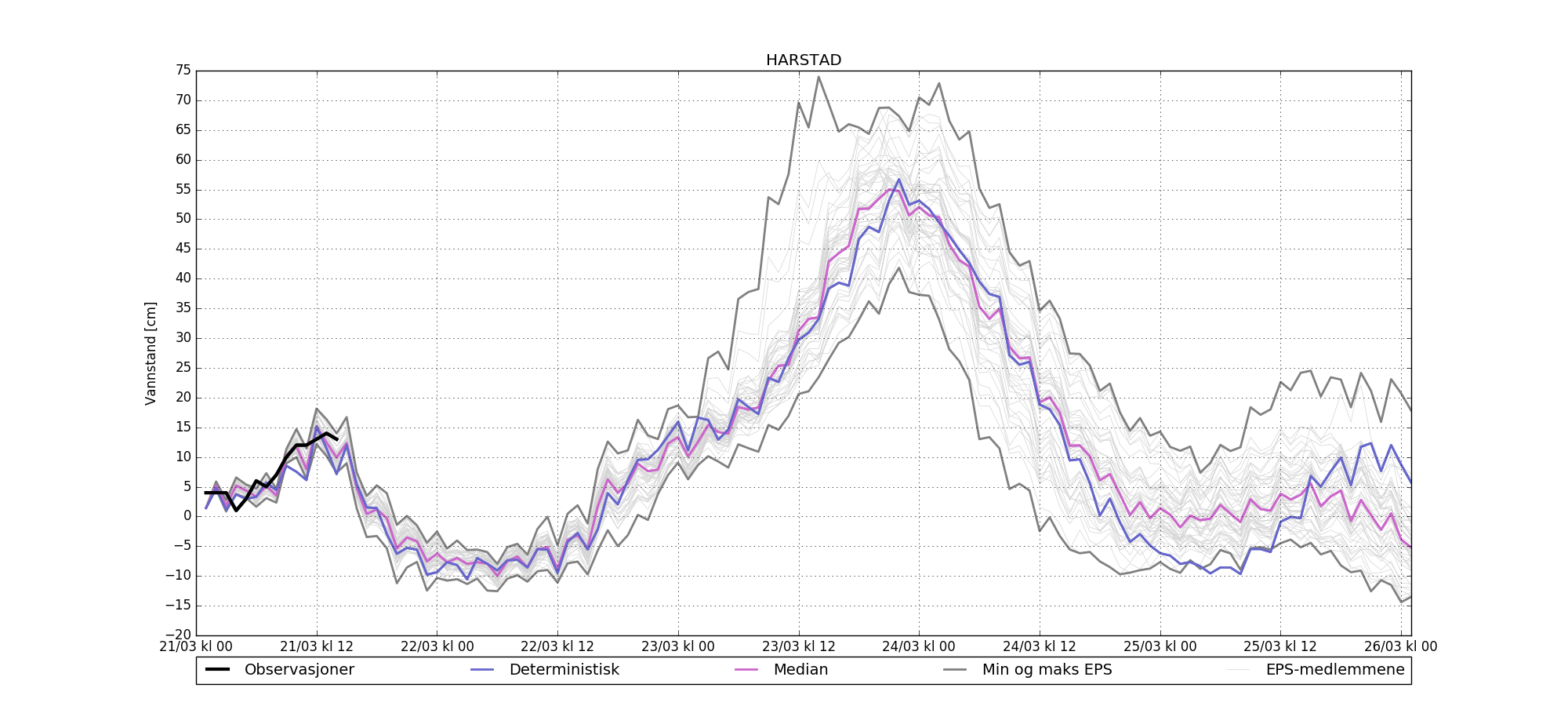 Gjennomsnittlig avvik deterministisk - observert: -2 cm