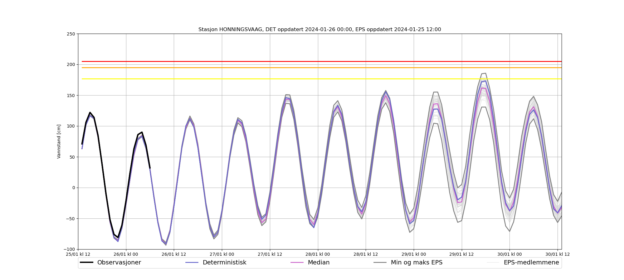Gjennomsnittlig avvik deterministisk - observert: -4 cm